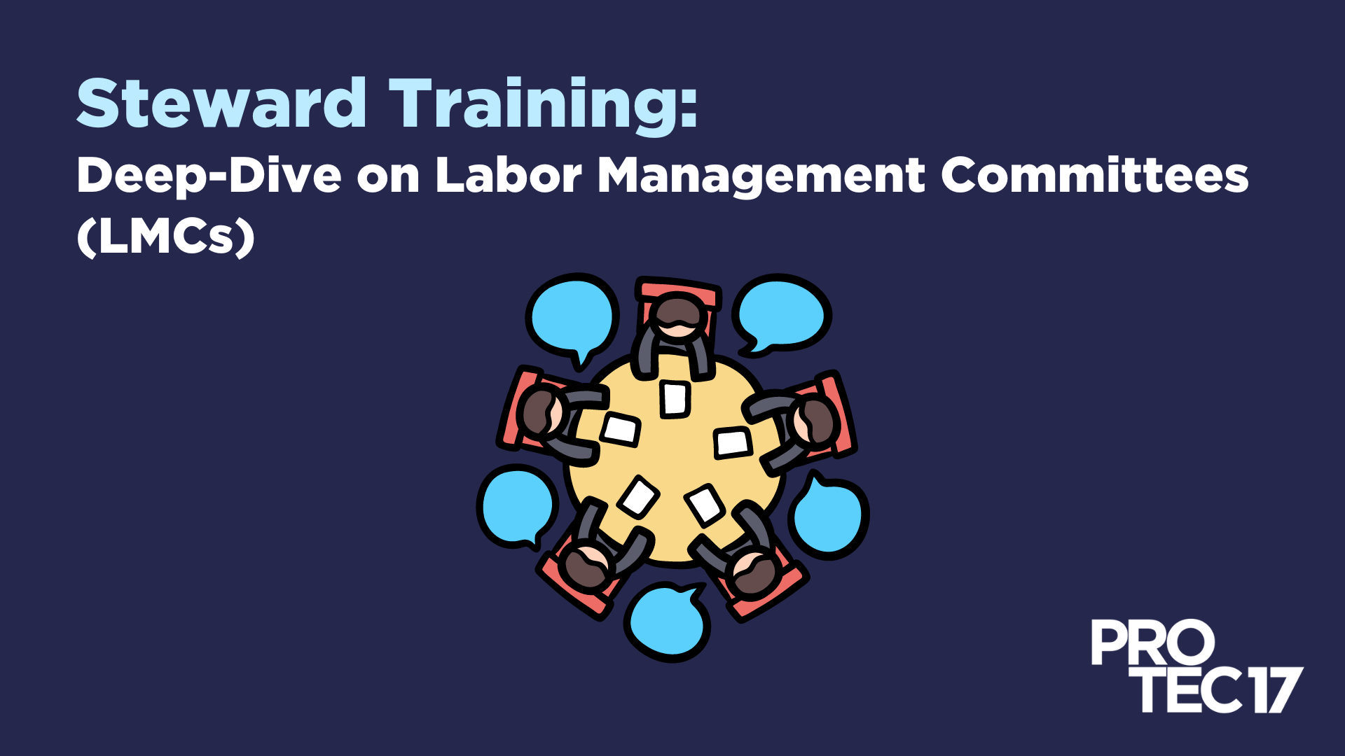 Join your fellow Stewards and Member Leaders on Wed., April 17 for a deep-dive training on Labor Management Committees (LMCs)! Come learn about what an LMC is, the process for preparing for these meetings, what can be discussed, and how to recruit your fellow member leaders to participate. Open to all Stewards and Member Leaders! Please check your personal email and/or the Member Portal events page HERE for more info and meeting details.
