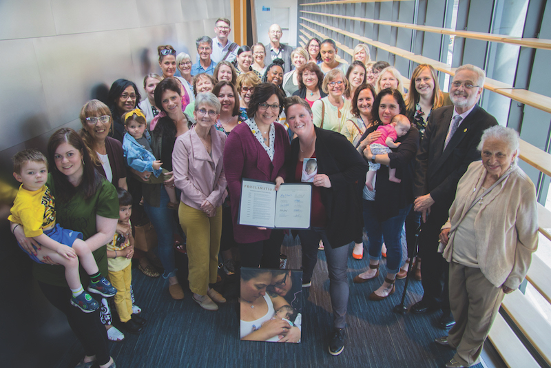 Some of the Alders many supporters gathered with them at Seattle City Hall on Bea’s Day, including Rachel’s dad, who flew in from Nashville, her aunt from Pasco, co-workers from HSD, as well as Erin’s family and co-workers, and PROTEC17’s Van Eyk. Even representatives from Human Resources at Erin’s company came to show their support and to learn about what the progressive, family-friendly policy might look like.