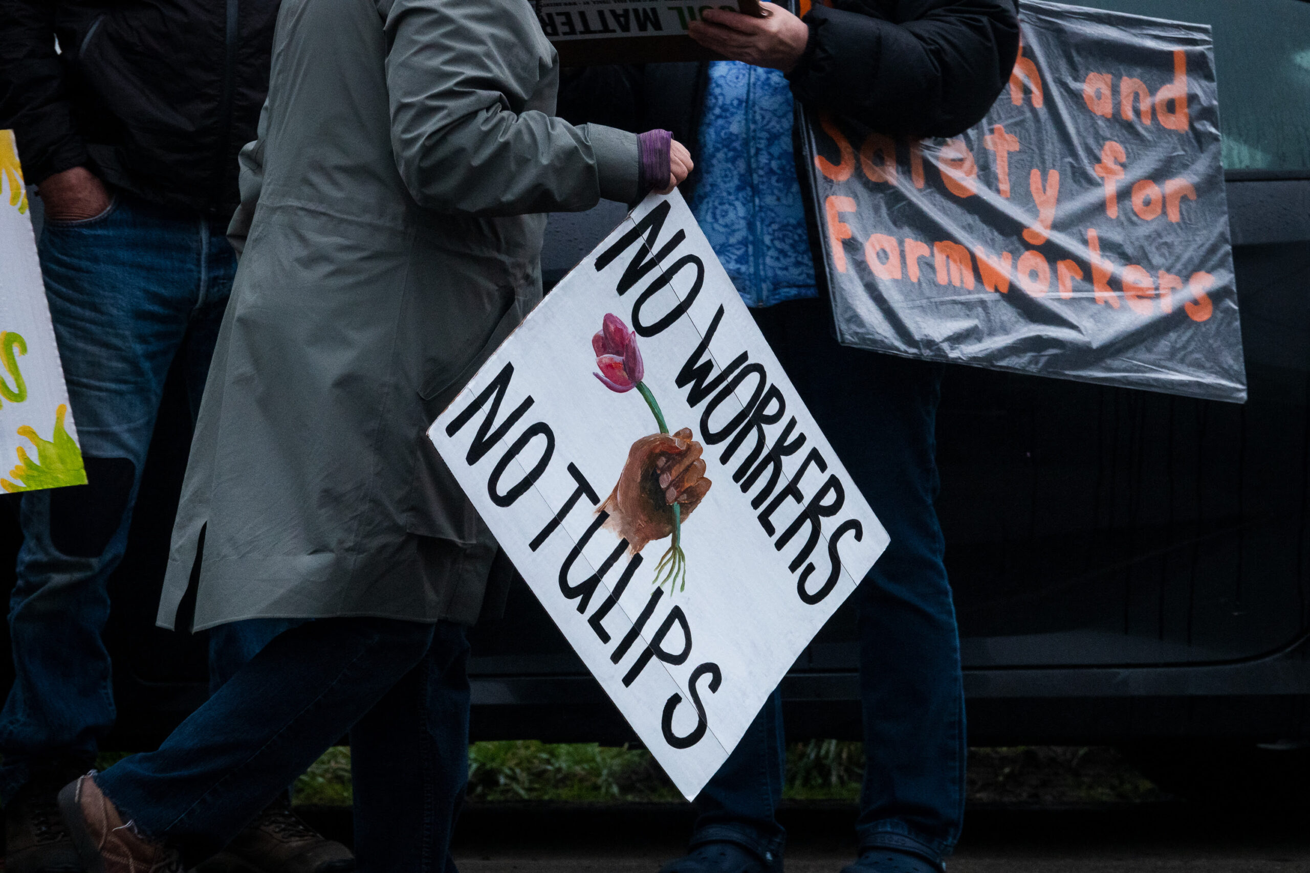 PROTEC17 stands in solidarity with the farm workers who harvest flowers in the Skagit Valley fields after their call for better pay and working conditions ahead of the famous spring tulip festival. Along with a three-day picket from March 22-24, workers voted to form a union with Familias Unidas por la Justicia, and are now negotiating with management at Washington Bulb Company.