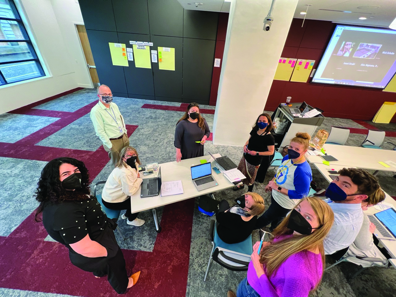 Each bargaining team member — Paul Cone, Rachel Burlington, Kevin Bond, Michael Goins, Andrew Neuman, Rebecca Sherman, Janet Strahl, Emily Tabachnick, and Emily Wilson — stepped up to lead a subcommittee on topics that were identified from comments and rankings in the pre-bargaining membership survey, which included: telework, professional development, contracting out, seniority, equity, attendance incentive/sick leave, workplace safety, and wages. In each area, subcommittee leaders crafted winning arguments and proposed creative solutions.