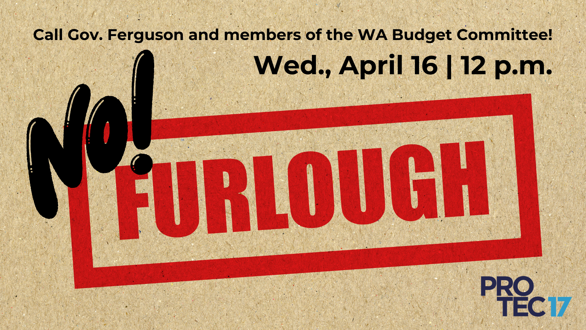 At 12 p.m. on Wed., April 16, we will call budget chairs and Governor Ferguson with a unified message – “NO FURLOUGHS for State employees!”