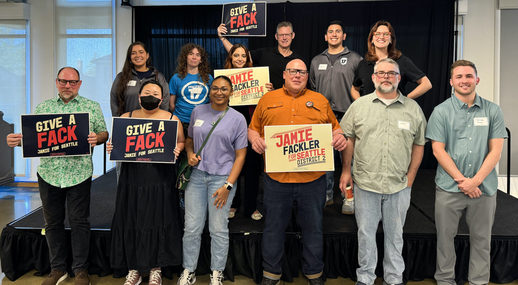 “Being in a union has taught me that we don’t have to accept things the way they are,” says Fackler. “We don’t have to accept a city that only works for a select few. If we organize, we can build a Seattle where everyone has a home, where every kid feels safe walking to school, where our communities are rooted, strong, and filled with hope, not fear.”