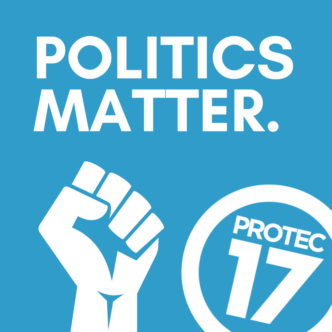 As public employees, politics play a huge role in PROTEC17 members’ lives. Lawmakers at every level make decisions that impact funding for the work we do, as well as our [...]