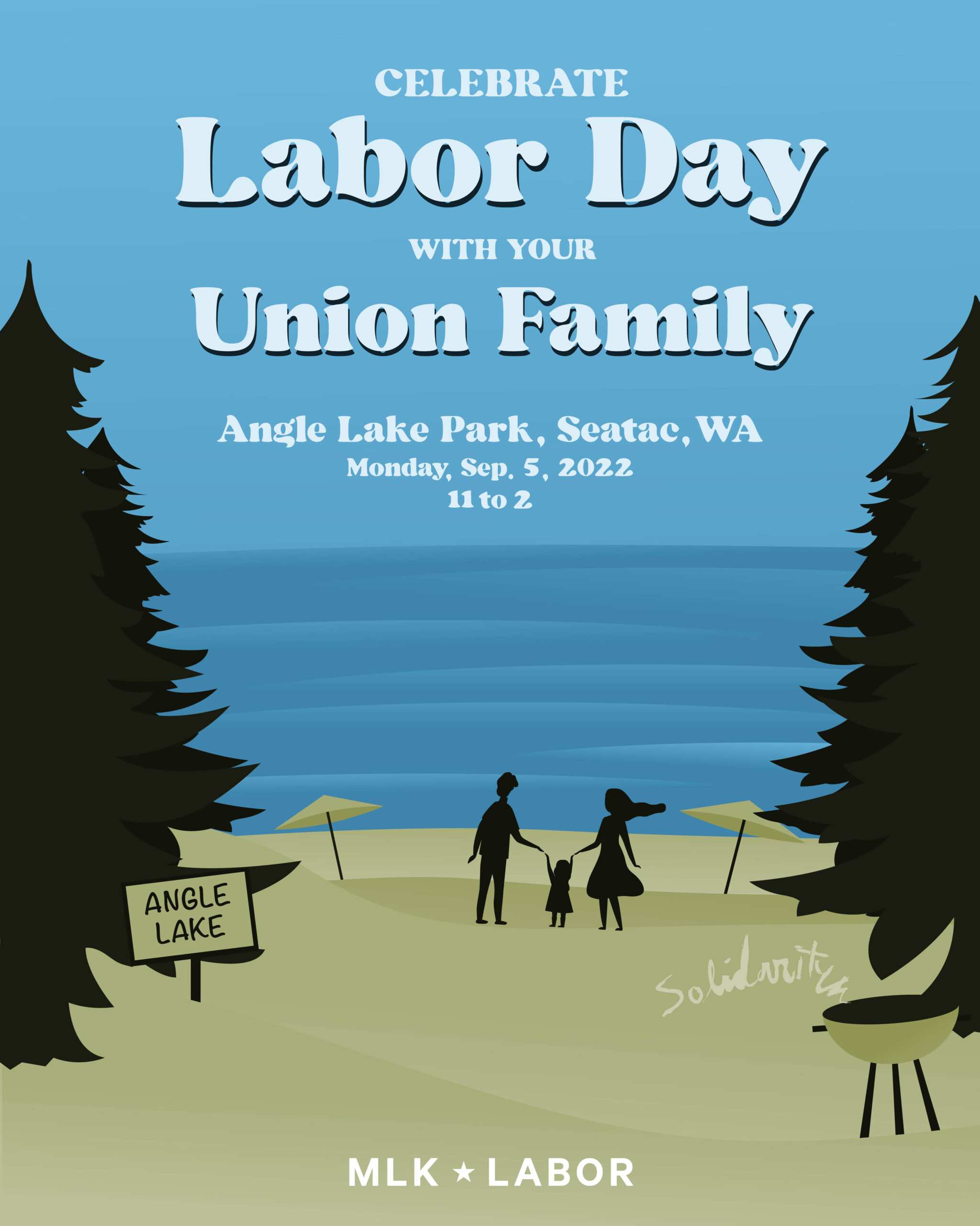 MLK Labor is hosting a fun Labor Day picnic! All union members and their families are invited for Labor Day 2022 on Mon., Sep. 5, 2022 from 11 a.m. – 2 p.m. at Angle Lake Park in SeaTac (19408 International Blvd, SeaTac, WA 98188). No RSVP needed!