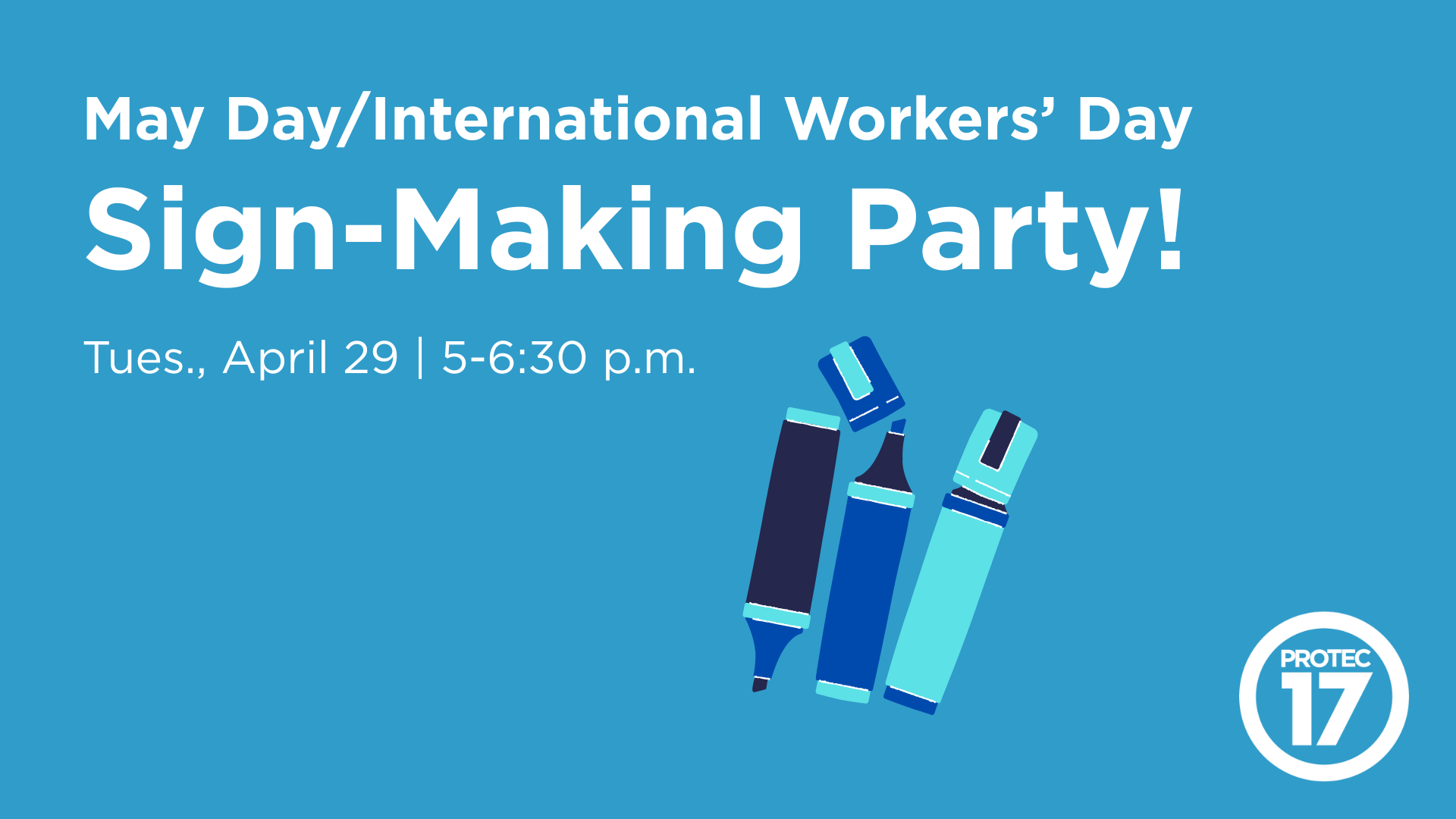 Join your PROTEC17 union siblings for a May Day/International Workers' Day sign-making party on Tues., April 29 from 5-6:30 p.m. at the PROTEC17 office (2900 Eastlake Ave E #300). We'll […]