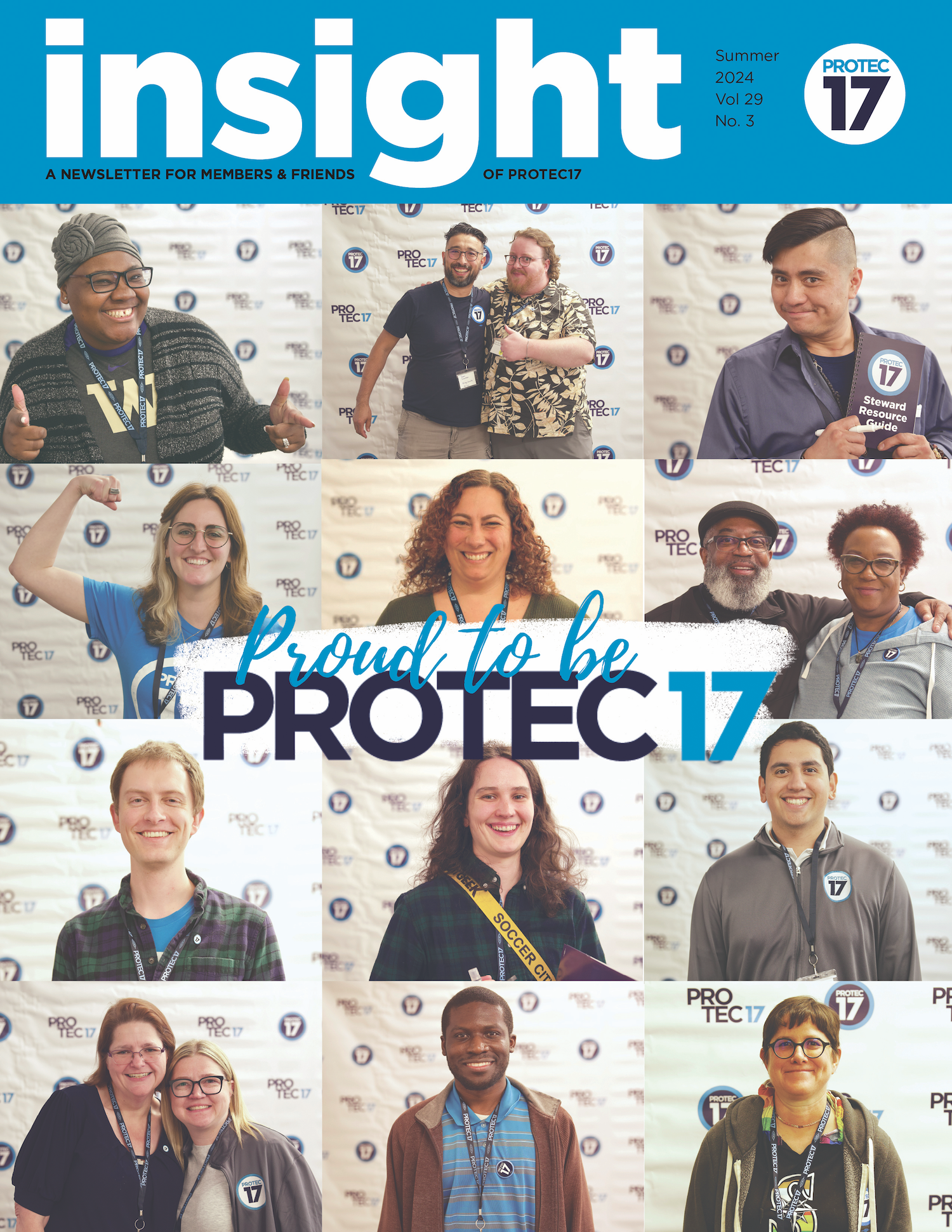 PROTEC17’s award-winning Insight magazine highlights the work and lives of our amazing, hard-working members! We strive to feature a variety of professions and people in each issue of our quarterly publication. If you have a story you’d like to share, please contact our Communications Director Deidre Girard at 206-328-7321 ext. 130.
